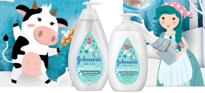 *經抗菌功效測試, 試驗菌種為E.coli ATCC 8739, 嬌生嬰兒牛奶純米沐浴乳有高達99.9%的抗菌效果. Johnson & Johnson (China), 2017.