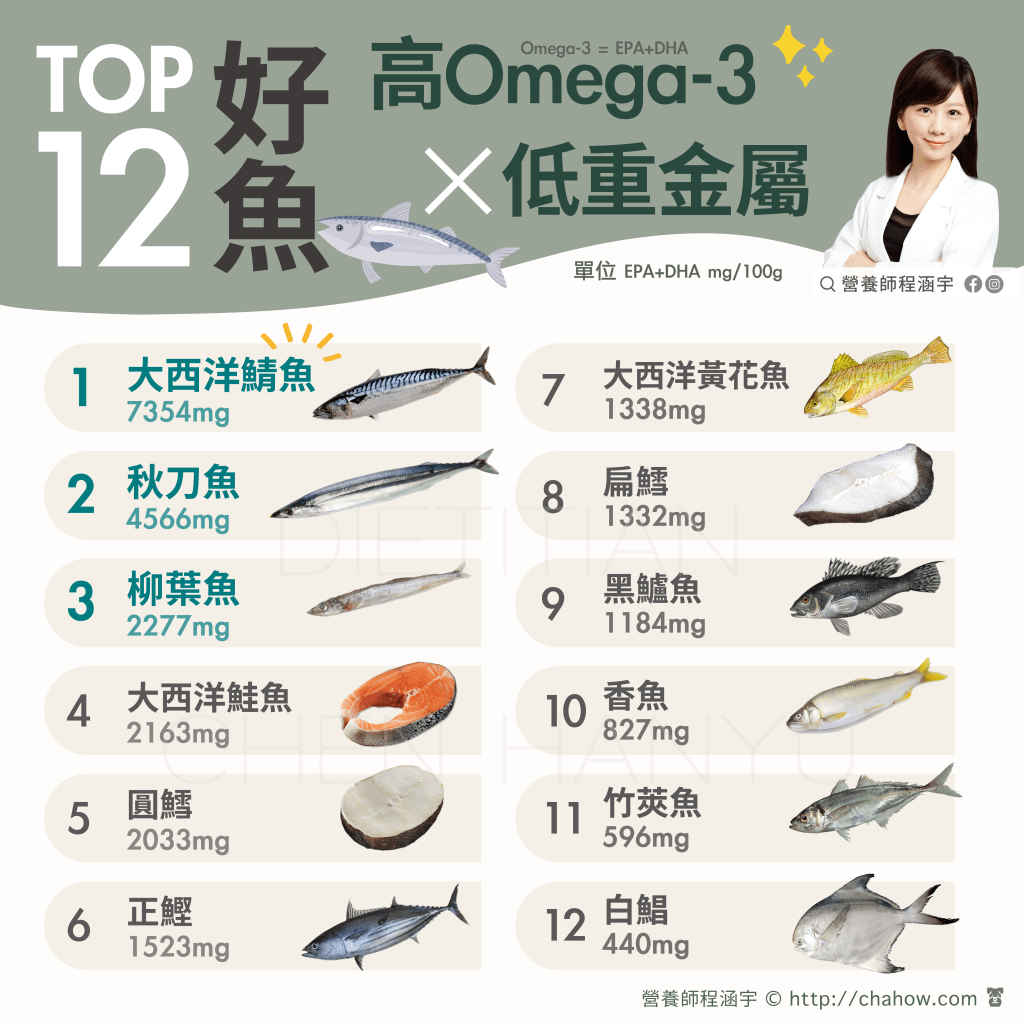 這邊給你12種魚的 Omega-3脂肪酸排名清單!